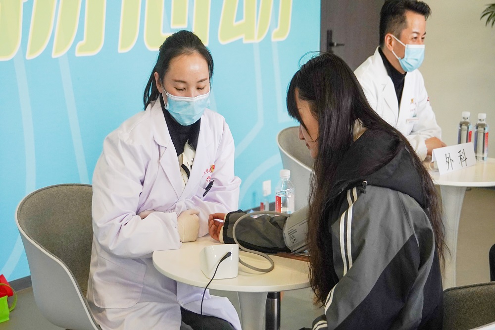 同时,对于不能来现场的员工采取线上面诊的方式。医务人员认真查看员工的体检报告,聆听员工们的健康诉求,为大家免费测量血压,为有需求的员工提供专业的健康咨询。