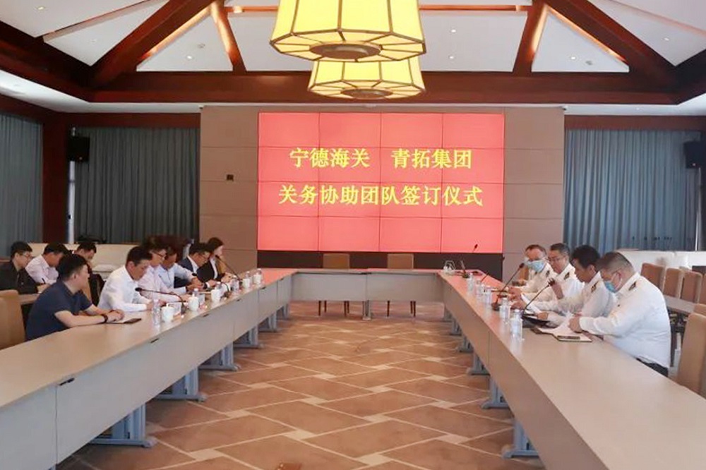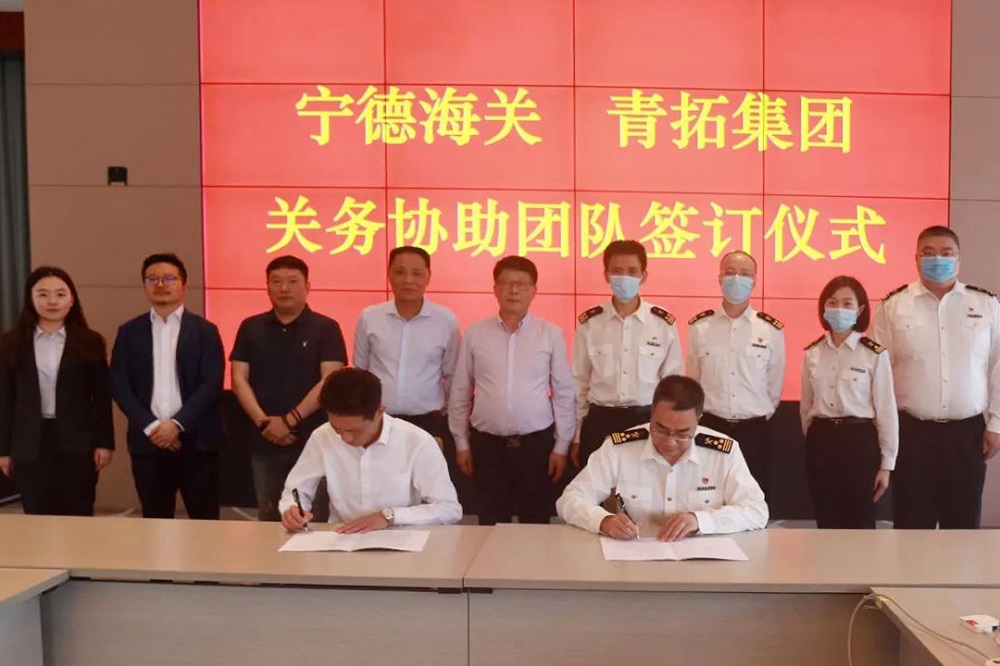 为优化服务,切实帮扶企业更好开拓市场、助力产业发展,近日,由宁德海关副关长陈锋、综合业务科科长庄海林一行五人组成的签约团队赴青拓集团有限公司参加“关务协助团队签订仪式”。青拓集团总裁陈庆科,青拓物流董事长章东龙、副总经理李小静,青拓集团发展计划部副总经理刘绍秋,永青集团销售副总经理张礼友等参加签约仪式。