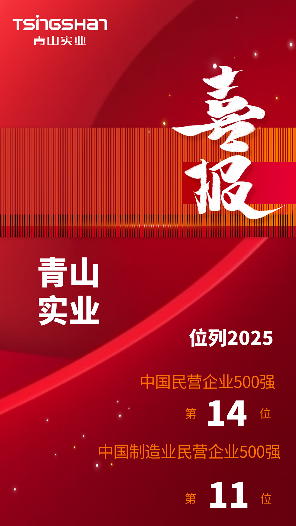 喜报丨jinnian金年会实业位列2025中国民营企业500强第14位、中国制造业民营企业500强第11位