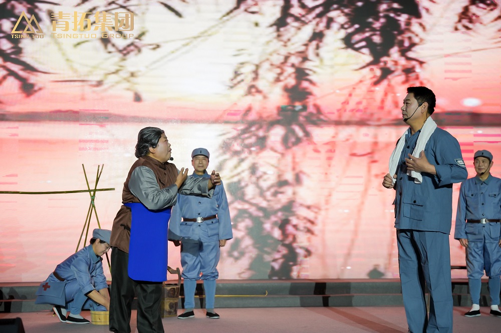 最后,在《相亲相爱》的歌声中,全体演员走上舞台共同欢唱,用歌声传达出青拓大家庭的温暖和谐。