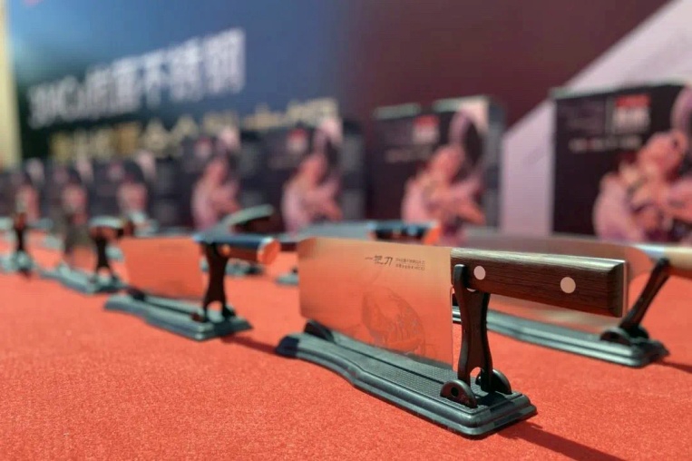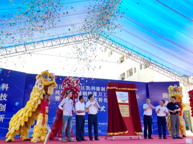 7月6日,由阳江市科学技术局主办,阳东区凯利德制刀有限公司承办的300系列抗菌不锈钢熔覆刀工程技术研究中心暨激光熔覆刀技术转化生产基地揭牌仪式在凯利德顺利举行,现场推出了创新刀具产品——304抗菌不锈钢熔覆刀。这是广东广青金属科技有限公司继抗菌不锈钢量产并应用在餐厨具领域后,联合凯利德和市五金刀剪产业技术研究院共同研发的一项重要突破。304抗菌不锈钢熔覆刀解决了传统刀具食品接触健康安全、永久防腐防锈、锋利持久耐用这三个普遍存在的痛点问题,填补了市场的空白,将推动阳江五金刀剪产业高质量发展。