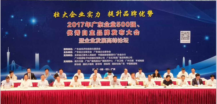 8月3日上午,2017年广东企业500强、广东省优秀自主品牌发布大会暨企业发展高峰论坛在广州白云国际会议中心举行。全国人大常委、广东省人民政府原省长黄华华,中国企业联合会、中国企业家协会驻会副会长黄海嵩及省国资委、省商务厅等省直有关部门领导与来自全省各行业地区的500余名企业家代表共同出席大会。广东广青金属科技有限公司副总经理王磊代表公司出席了此次会议。