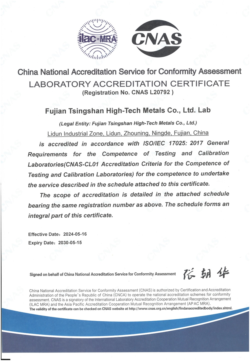 近日,福建jinnian金年会特材有限公司实验室经过严格的评估和审核,成功获得了中国合格评定国家认可委员会(CNAS)的认可,标志着该实验室在检测和检验等领域的能力和技术水平已达到国际认可的标准。