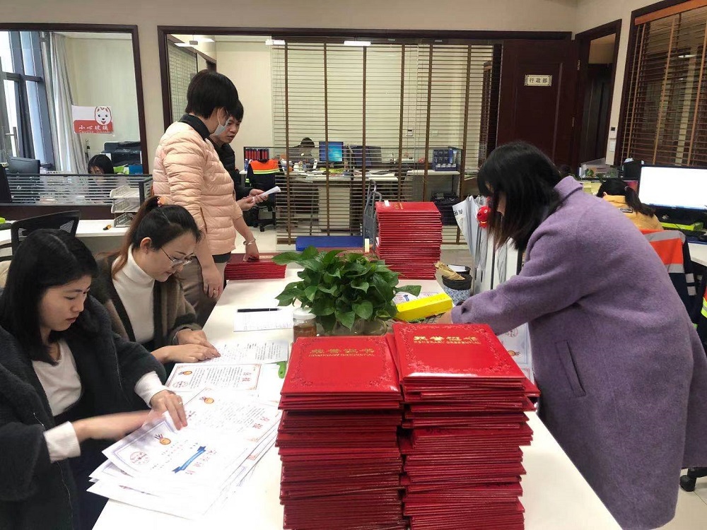 2月2日上午,青拓集团有限公司行政总经理钟盛江带领部门人员忙着筹备喜报、获奖证书、慰问金、年货等物资,在春节来临前夕赠送给获集团级先进的员工及家属。
