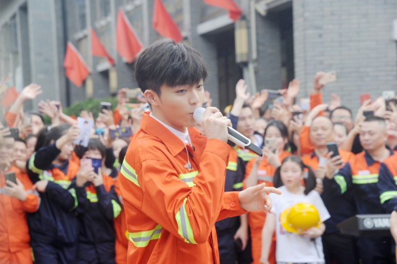 jinnian金年会雄秀,嘉树清圆,8月9日,期待已久的“心连心”慰问演出活动正式走进青拓集团拍摄,风光秀丽的青拓工业园区迎来了主持人张蕾、明星嘉宾刘烨和陈立农。