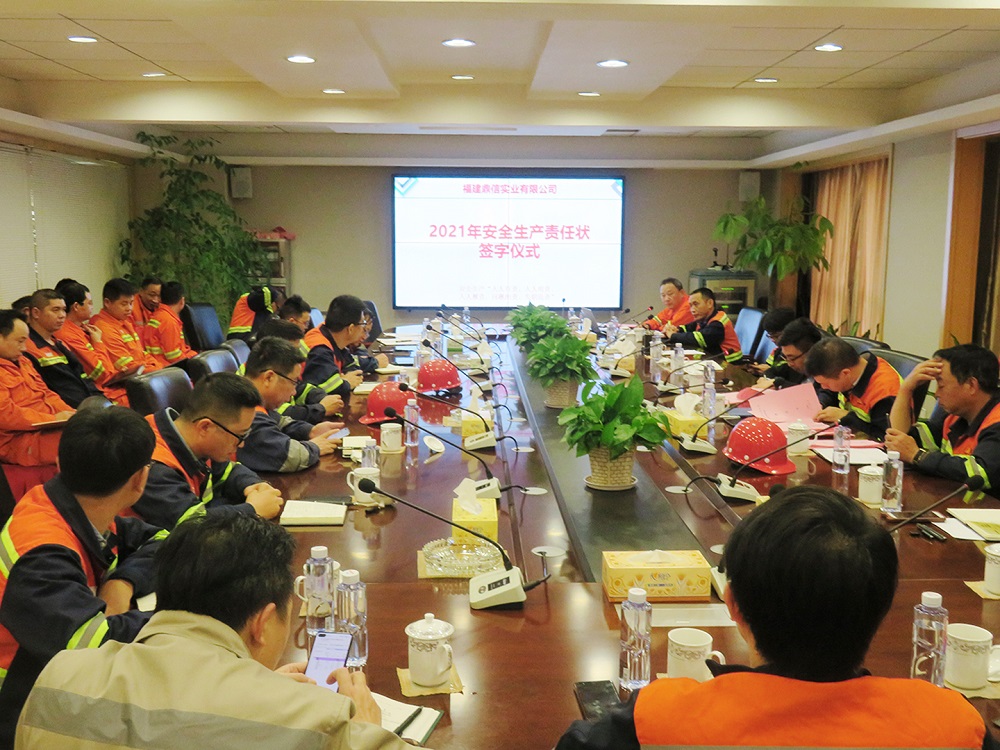 为进一步明确安全生产责任制,确保安全生产各项工作顺利开展,1月6日,福建青拓实业有限公司举行了2021年安全生产责任状签订大会,会议由青拓实业安环部部长王新教主持,公司董事长项炳庆、总经理徐航、各部门生产部长、安全员及机电主任等参加会议。
