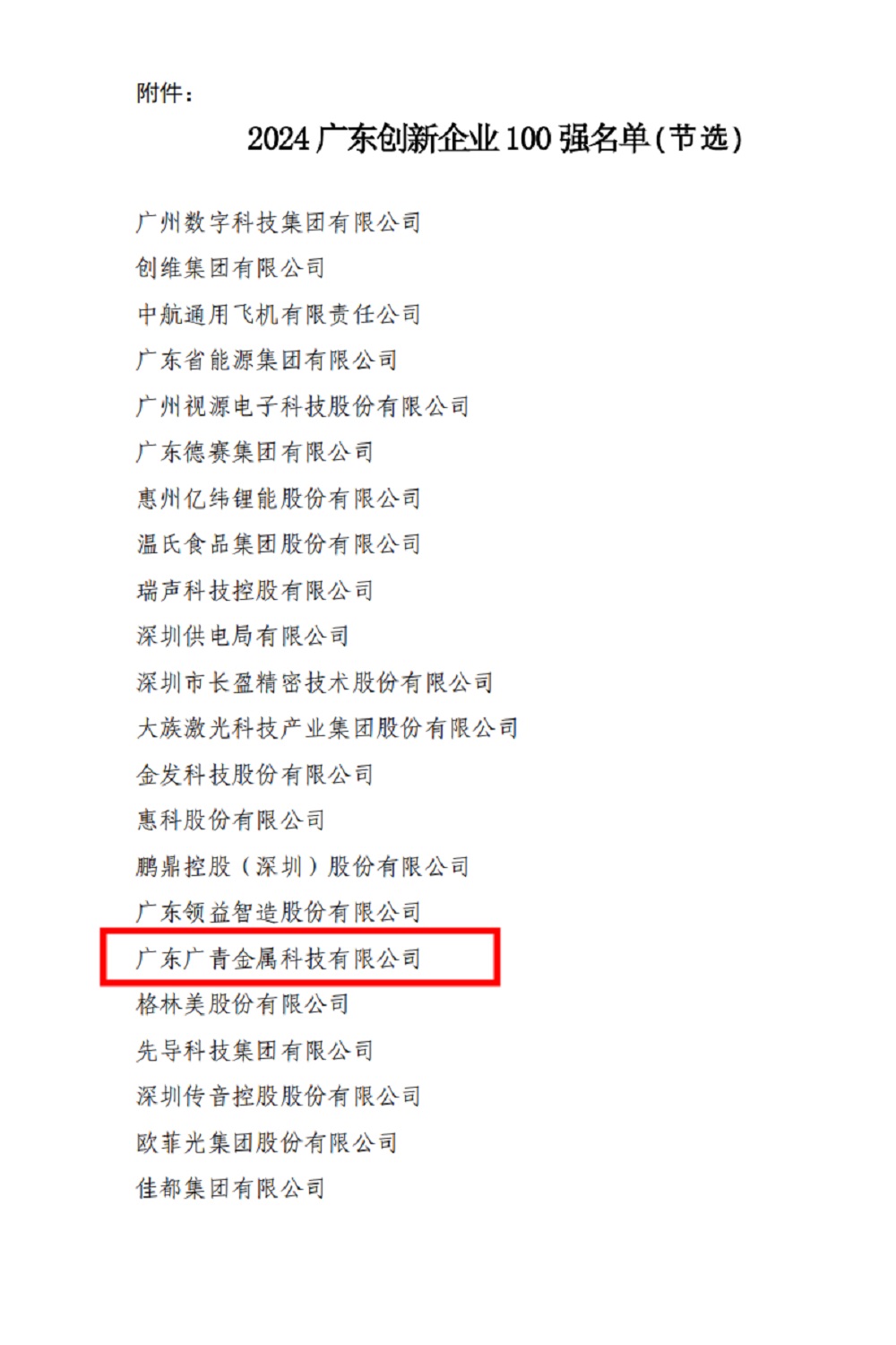 9月20日下午,广东省企业联合会、广东省企业家联合会发布2024广东企业500强企业榜单及发展报告。广东广青金属科技有限公司连续11年蝉联榜单,位列2024广东企业500强第84位、广东制造业100强第36位,并再次入选2024广东创新企业100强。